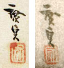 Note: Seals reading Han Sada (板貞) and Kinsekidô (金石堂) have been cited in the literature, but are not yet identified here.