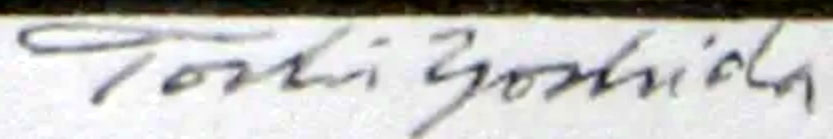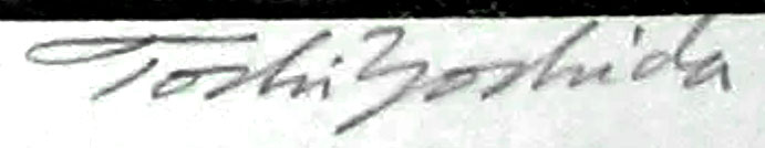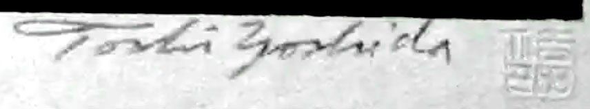 Note about editions: Nearly always, lifetime signatures are pencil-signed in English by Tôshi, whereas posthumous signatures are stamped facsimiles. However, very late in his career, when illness and weakness in his writing hand prevented him from signing, Tôshi supervised the studio printing and, on impressions he approved, used a stamped signature accompanied by an embossed seal. The same applies for both numbered and unlimited editions. The following examples are small and thus not entirely effective in demonstrating differences, but perhaps what can be seen here is that the pencil signature appears smooth and consistent with the use of graphite (pencil). Stamped (printed) signatures, however, appear somewhat broken or erratic in their strokes as if uneven pressure had been applied (this appears to be an artifact of the facsimile stamps).